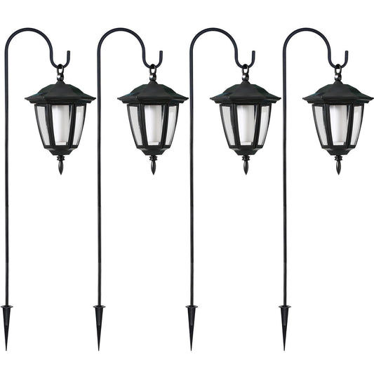 Dynaming 4 Pack Solar Halloween Flame Hanging Lights Outdoor, Flickering Flame LED Garden Lanterns with 4x38 Inch Shepherd Hooks, Landscape Lighting Waterproof for Lawn Yard Pathway Driveway, Purple