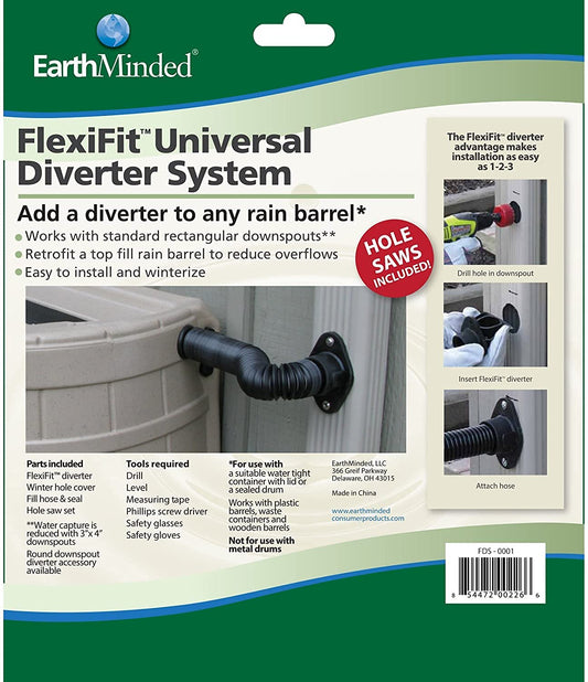EarthMinded FlexiFit Universal Diverter System - Works with Standard Rectangular Downspouts - Easily Connects Your Existing Rain Barrel to a Downspout Diverter System
