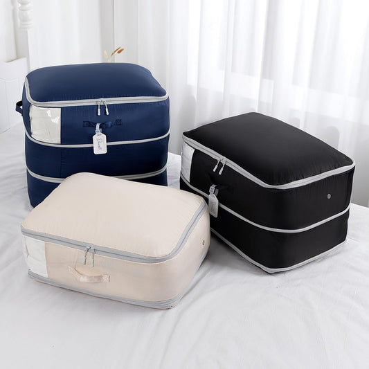 Easortm Comforter Storage Bag - Large Capacity Blanket Storage Bags 3-Layer Ultra Space Saving Self Compression Organizer, Washable Compression Bags for Storage Comforter Blanket, 2-Pack, Beige