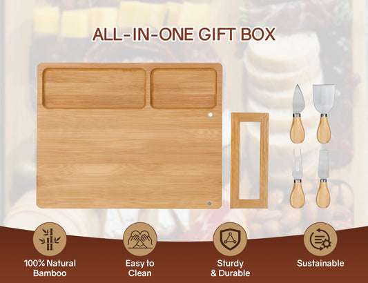 Easoger Cheese Board and Knife Set - Extra Large Charcuterie Boards with Magnetic Knife Holder, Cheese Platter Gift for Christmas, House Warming, Wedding, Anniversary, Thanksgiving