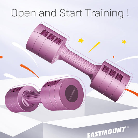 EAST MOUNT Adjustable Dumbbells 5 lb Dumbbells Set of 2 / Pair 10 lb Total Free Weights 6 in 1 Women Hand Weights for Home,Office,Gym Exercise Training 2lb 3lb 4lb 5lb Fast Adjust