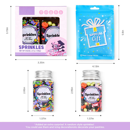 Edible Halloween Jimmies Sprinkles, Halloween Sprinkles, White, Purple, Orange, and Black sprinkles, Jimmy for Decorating, Perfect for Cake, Cupcake, Macaron, Baking, Ice cream, and Cookies(120g/4.23 oz)