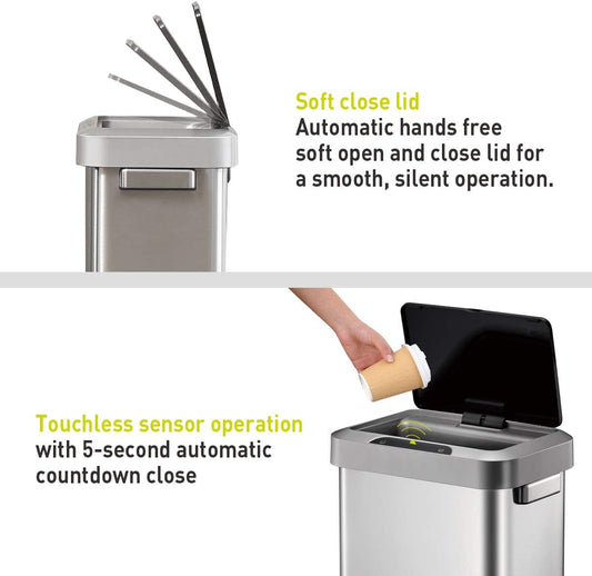 EKO EK9262MT-45L Horizon 45 Liter/11.9 Gallon Rectangular Motion Sensor Trash Can, Brushed Stainless Steel Finish