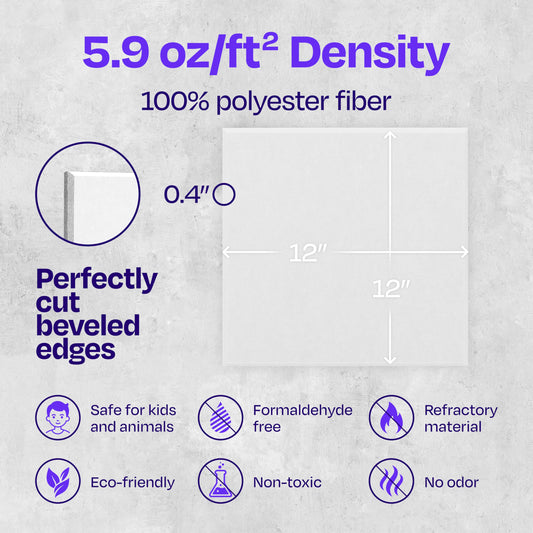 Ekkogo Acoustic Panels 12-Pack Soundproof Wall Panels 12"X12"X0.4" Sound Panels High Density Sound Dampening Panels - [White Square]