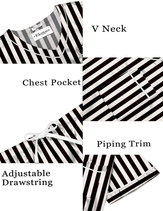 Ekouaer Satin Hallowen Pajama Set Womens Short Sleeve V Neck Shirt with Long Pant Soft Loungewear Pjs Set