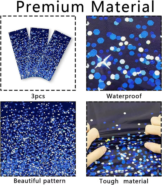 3pcs Blue Silver Tablecloths Denim and Diamonds Party Decorations Navy Blue and Silver Tablecloth Disposable Plastic Royal Blue Confetti Rectangle Table Cover for Birthday Wedding Party Decor Supplies