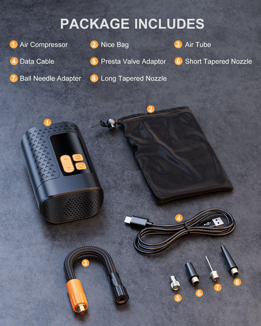Electric Bike Pump, 160PSI Mini Bike Tire Pump, 4X Fast Bicycle Pump with Digital Pressure Gauge, Bike Air Pump with Presta and Schrader Valve for Mountain Bike, Moto, Road Bike, Car and Balls