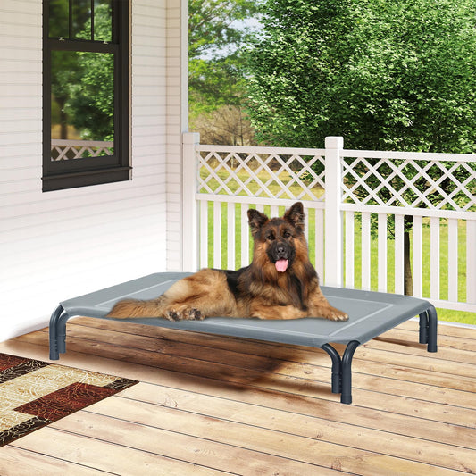 Elevated Dog Bed Raised Outdoor Dog Cot for Medium Dogs, Installation Requires No Tools, Frame with Washable Cooling Breathable Mesh Anti-Slip Feet, Indoor Pet Bed, Grey, 35.4 Inches