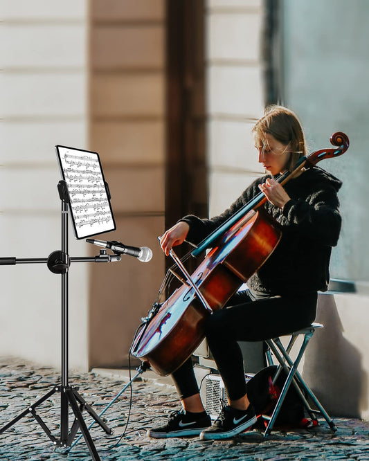 elitehood Aluminum iPad Holder for Mic Stand, Side Mount iPad Music Stand Holder for Microphone, 360° Swivel Tilt Adjustable Mic Tablet Mount for 4-13in iPhone, Cell Phones and Tablets