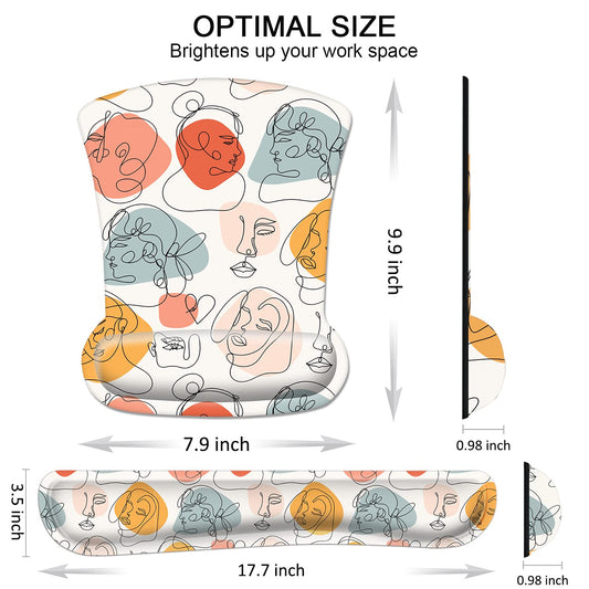 Ergonomic Mouse Pad and Keyboard Wrist Rest, Mouse Pad Wrist Support with Non Slip Rubber Base Mousepad Set + Coaster for Computer, Laptop, Easy Typing & Pain Relief, White Art Face