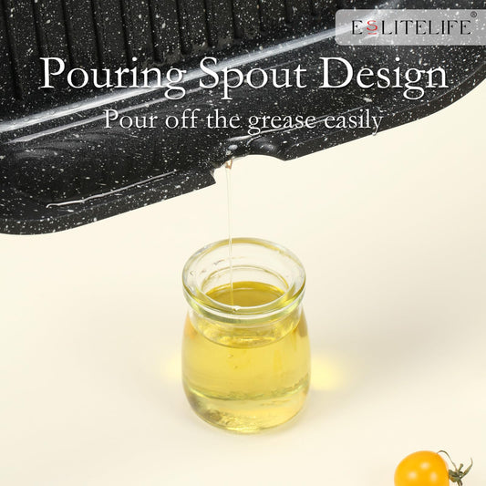 ESLITE LIFE 11 Inch Nonstick Grill Pan with Lid for Indoor Cooking, Versatile Induction Square Large Grilling Skillet Steak Pan for Stove Tops, PTFE & PFOA Free, Black
