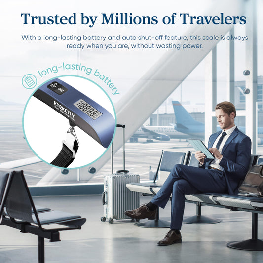 Etekcity Luggage Scale, Travel Essentials, Digital Suitcase Weight Scales for Travel Accessories, Hanging Baggage Scale with Temperature Sensor, Rubber Paint, 110 Pounds, Battery Included, Blue