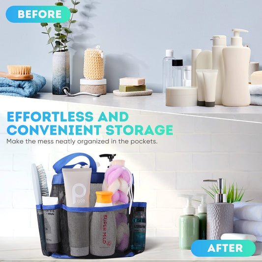 EUDELE Mesh Shower Caddy Portable for College Dorm Room Essentials,Portable Shower Caddy Dorm with 8-Pocket Large Capacity,Shower Bag for Beach,Swimming,Gym-Blue
