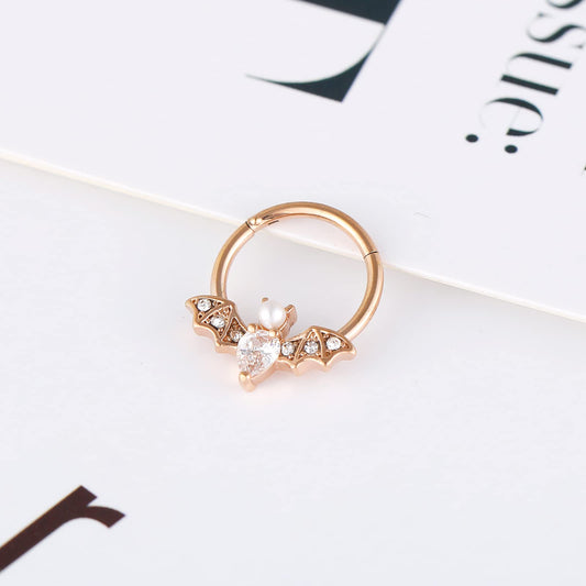 EVISPOL 2Pcs 16G Septum Nose Rings for Women Men, Stainless Steel Halloween Bat Septum Jewelry Dragon Claw Horseshoe CZ Septum Clicker Cartilage Daith Tragus Helix Ear Piercing Jewelry-Rose Gold Bat-Dragon Claw