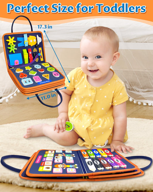Exorany Busy Board Montessori Toys for Toddler Boy & Girl Birthday Gifts, Busy Book Learning Sensory Toys for Toddlers, Toddler Travel Toy Educational Activities Learn Fine Motor Skills