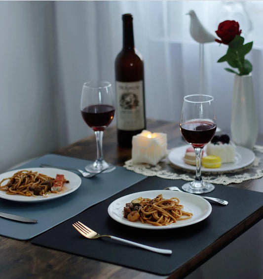 Faux Leather Halloween Placemats HeloHo Black Table Place Mats Set of 6 Waterproof Oilproof Heat Stain Resistant Placemats Washable Wipeable Placemat for Kitchen Dining Table Decoration Indoor Outdoor