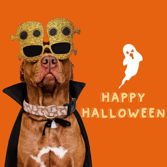 Faygarsle Fall Dog Collar - Adorable Ghost Pattern Halloween Collar for Small to Large Dogs - Cute Orange Neckwear for Boys & Girls