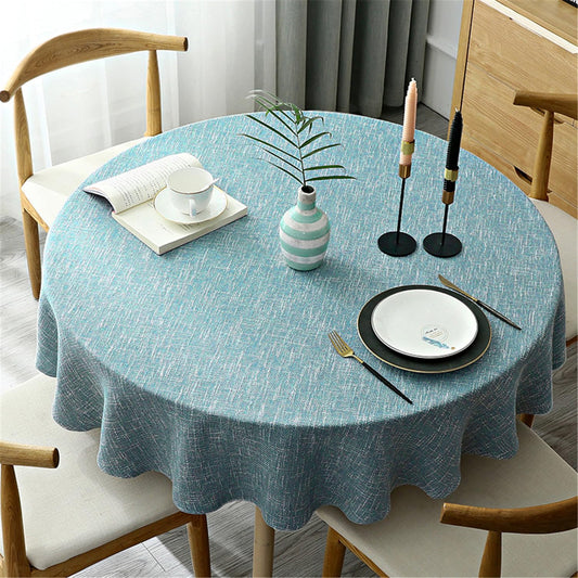 Fhberni Heavy Weight Round Tablecloth, Decorative Solid Color Table Cover, Cotton Linen Table Cloth for Kitchen Dining Home Tabletop Decoration, Light Blue, Round - 62"