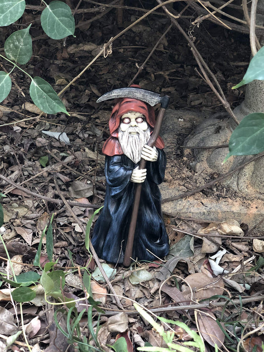 FICITI Garden gnome Reaper Statue - Evil Gnome Scary Gnome for Lawn Ornaments, Indoor or Outdoor Decorations, Halloween Decoration - 8.5 Inch Tall