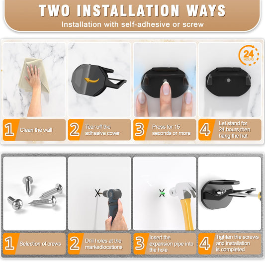 48 Pack Adhesive Hat Hooks for Wall, Super Strong Hat Rack for Baseball Caps, Hat Organizer Display for Home Decor, Hat Hangers Holder for Wall, Door, Closet, No Drilling - USA Patented (Black)