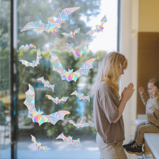 45PCS Halloween Bat Decoration Stickers for Bird Strikes - Anti-Collision Window Decals to Save Birds From Collisions, Non-Adhesive Reusable Vinyl Rainbow Stickers