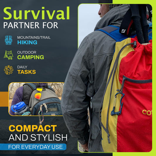 Firebiner 6-in-1 Fire-Starting Carabiner EDC Emergency Multitool -Keychain,Utility Blade,Bottle Opener,& More-Camo Gray