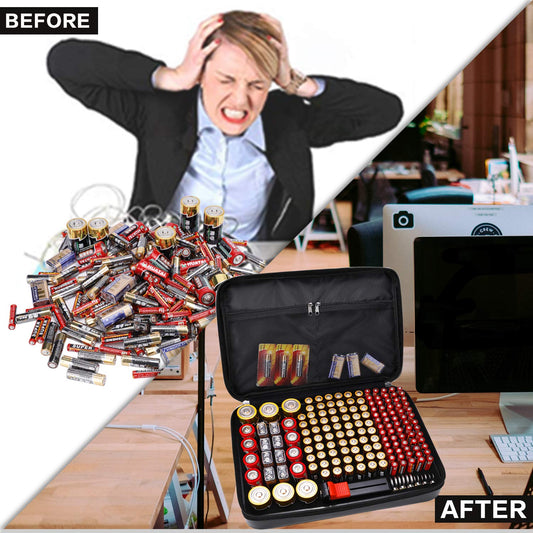 Fireproof Battery Organizer Storage Case Waterproof & Explosionproof, Safe Bag Fits 210+ Batteries Case - with Tester BT-168, Carrying Container Bag Energy Batteries AA AAA C D 9V Lithium 3V Holder