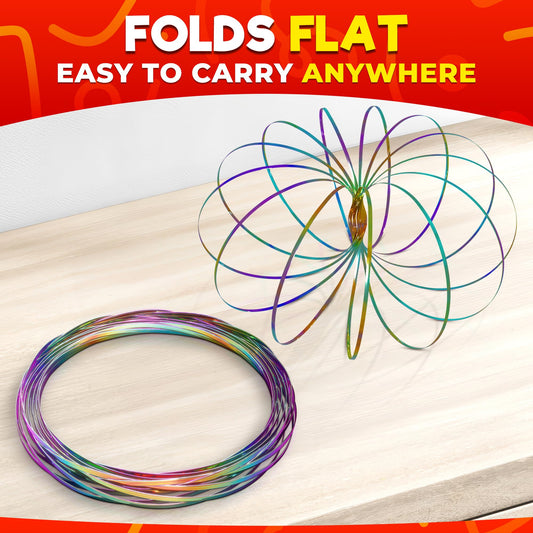 Flow Ring Spinner Ring Arm Toy 5.1" - Rugged, Corrosion Resistant Stainless Steel Geometric Sensory Spring Toy, Changing Colors, Compact Size - Comfortable Fit Magic Flow Bracelet with Calming Effect