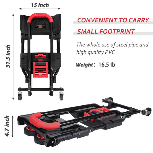 Folding Hand Truck, Portable Dolly Cart with Rubber Wheels and Retractable Handle, 2 in 1 Design 264lbs Capacity Hand Cart Foldable for Transportation/Luggage/Mobile/Travel/Office Use