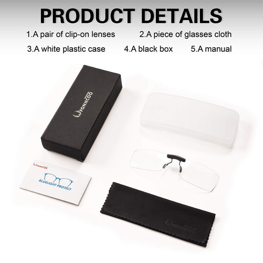 FONHCOO Clip-on Blue Light Blocking Glasses Night Driving Sunglasses 2 Pack Lens over Prescription Glasses for Women Men (2 Pack Transparent Blue Light Blocking Lens)