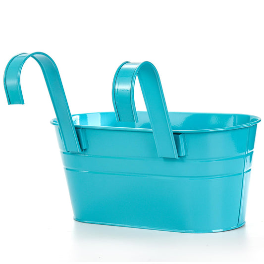 Foraineam 6 Pack Hanging Flower Pots, Metal Iron Plant Pot Holders, Garden Pots Balcony Planters, Metal Bucket Flower Holders Wall Hanging Decor Pot with Detachable Hooks for Railing Fence Balcony