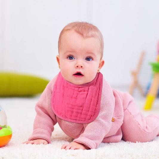 Frienda 6 Pcs Muslin Bibs Burp Cloths for Baby Teething Bandana Bibs 6 Absorbent Layer for Baby Boy Girl Cotton Burping Cloth(Pink Series)