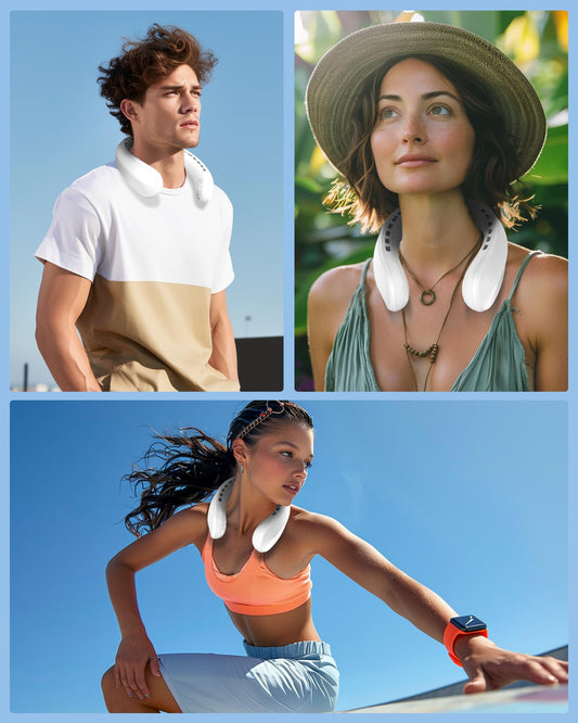 FrSara Rechargeable Neck Fan, Portable Personal Fan that Blows Cold Air, 3-Speed with 5200mAh Battery, Supports USB TYPE-C, Ideal Present for Birthday, Women, Men, Travel, Outdoor, Menopause, Ivory