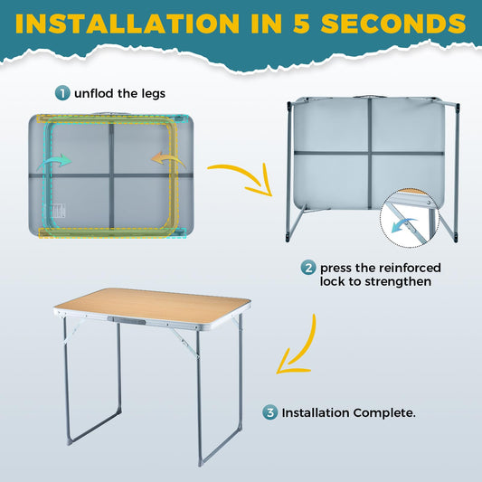 FUNDANGO Small Folding Table, Portable Lightweight Picnic Foldable Card Tables with Carry Handle for Outdoor Hiking BBQ Beach Backyard