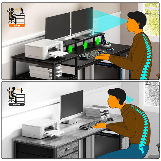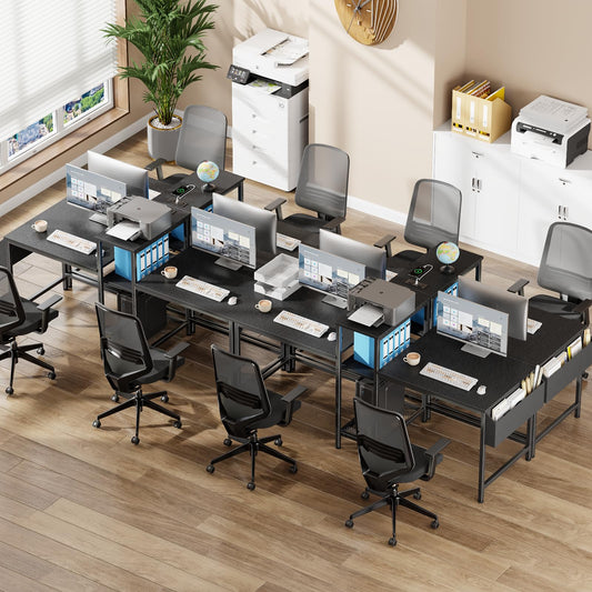 Furologee Double Desk with Power Outlets, 71 Inch Computer Desk with Storage Bag and Headphone Hooks, Gaming Desk Study Writing Table for Home Office, Black