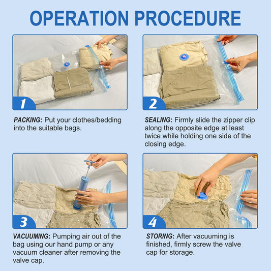 Fygrip 10 Pack Small Vacuum Storage Bags with Hand Pump, Plastic Packaging Bags, 80% Space Saver Vacuum Seal Bags for Clothing, Travel Lugggage, Blankets, Comforters