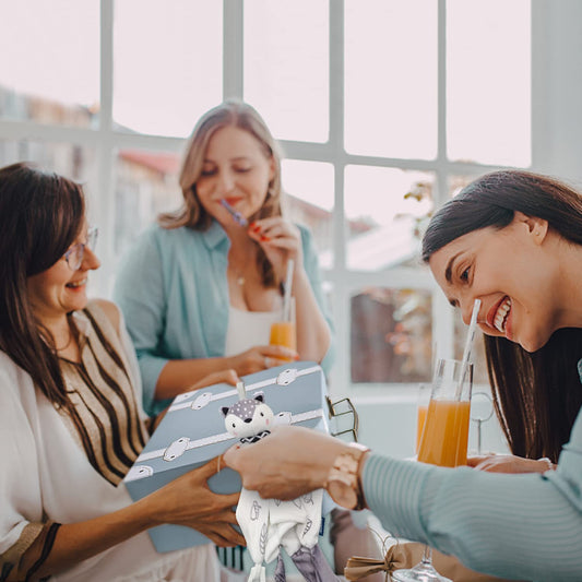 Fvntuey Baby Shower Gifts, Baby Boy Gifts Basket Includes Newborn Blanket Baby Lovey Security Blanket Wooden Rattle Toy, Funny Baby Bibs Socks & Greeting Card - Baby Gift Set Newborn Shower Basket