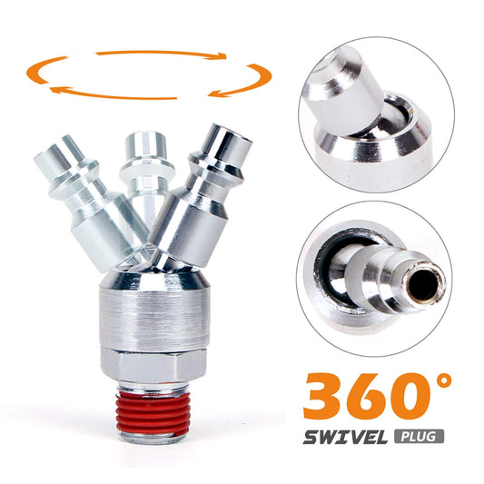 FYPower 22 Pieces Air Compressor Accessories kit, 3/8 inch x 25 ft Hybrid Air Compressor Hose Kit, 1/4" NPT Quick Connect Air Fittings, Tire Inflator Gauge, Heavy Duty Blow Gun, Swivel Plugs