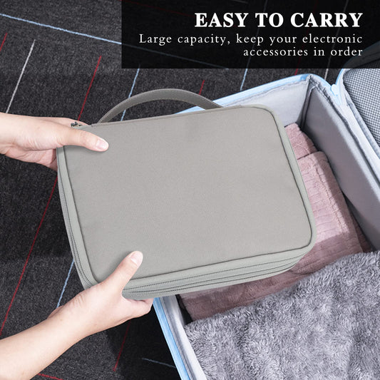 FYY Electronic Organizer, Travel Cable Organizer Bag Pouch Electronic Accessories Carry Case Portable Waterproof All-in-One Double Layers Storage Bag for Cable, Cord, Charger, Phone, Hard Drive, Grey
