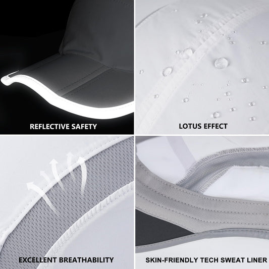 GADIEMKENSD Baseball Cap Nylon Running Outdoor Sports Hat for Men Woman Adjustable Quick Drying Reflective Foldable 50+ UPF Inhibit UV Mesh Water Repellency Race Performance Lightweight White