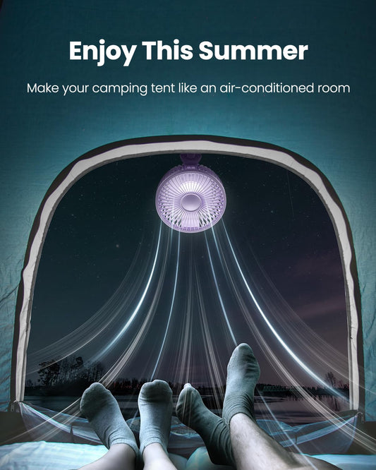 Gaiatop Portable Camping Fan with LED Lantern, 360°Rotation and Clip on for Desk, 4000mAh USB Rechargeable Battery Powered, Digital Display and Hanging Hook for Tent Outdoor Travel Bedroom Green