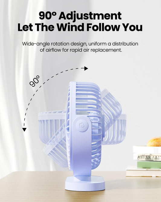 Gaiatop USB Desk Fan, 3 Speeds Strong Airflow, 5.5 Inch Portable 90° Rotate Quiet Cooling, Small Personal Table Fans for Bedroom Home Office Travel Blue