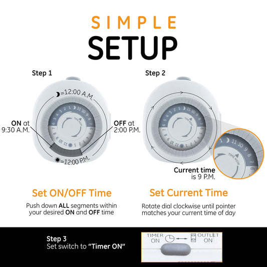 GE 24-Hour Heavy Duty Indoor Mechanical Timer, 1 Grounded Outlet Timer, ON/OFF Daily Cycle Timer Plug, 30-Minute Interval Timer Outlet, 125VAC Light Timer, Plug Timer, Lamp Timer, White, 1 Pack,15153