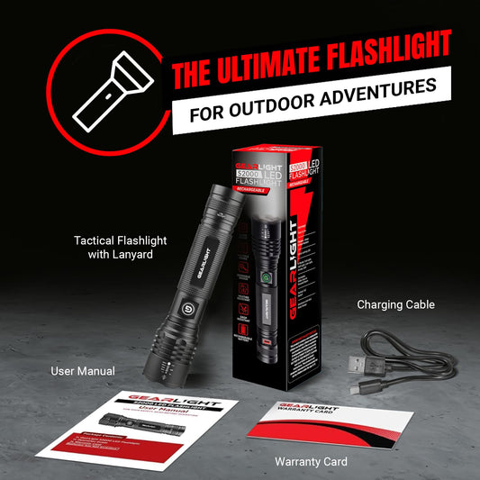 GearLight S2000 LED Rechargeable Flashlight High Lumens - Super Bright, Powerful, Mid-Size Tactical Flashlight for Outdoor Activity & Emergency Use