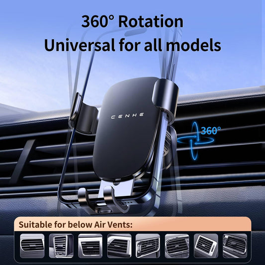 Generic Metal Hook Car Phone Holder Mount, Super Stable Air Vent Cell Phone 360 Rotation Car Mount, Fit for All Smartphones (Black)