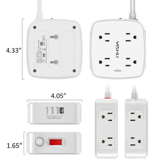 6 Ft Surge Protector Power Strip - 8 Widely Outlets with 4 USB Ports, 3 Side Outlet Extender with 6 Feet Extension Cord, Flat Plug, Wall Mount, Desk USB Charging Station, ETL,White
