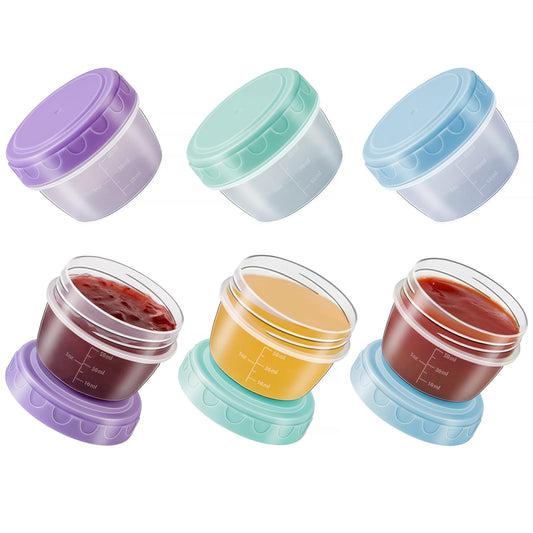 6 Pack 2.7 OZ Salad Dressing Container to Go with lids,Dishwasher and Microwave Safe Tiny Condiment Containers with Graduated Lines, Reusable and Leakproof Small Sauce Containers for Lunch Box