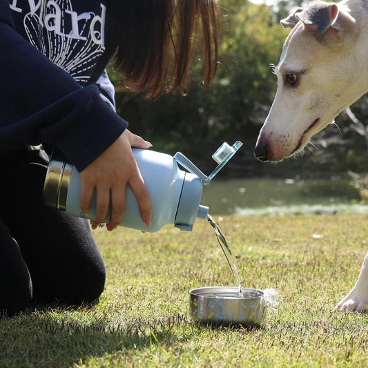 GiNT 37oz Insulated Stainless Steel Dog & Human Water Bottle, All-in-1 Travel Dispenser with Detachable Bowls & Carrying Case, Leak-Proof Pet Canteen for Walking, Hiking, Camping, Car (Blue)