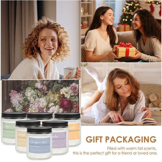 6 Pack Fall Candles Set,Scented Candles for Home, Aromatherapy Gifts for Women Men, Fall Winter Holiday Natural Soy Candles Set for Birthday, Mother's Valentines Day Gifts for Her