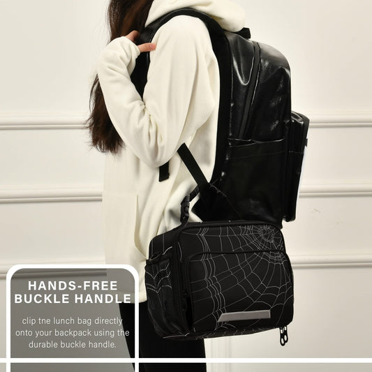 Glaphy Cobweb Lunch Bag Insulated Black Spiders Web Lunch Box Cooler Cooling Tote Food Container for Men Women Kids Adults